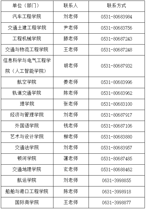 各二级学院联系方式