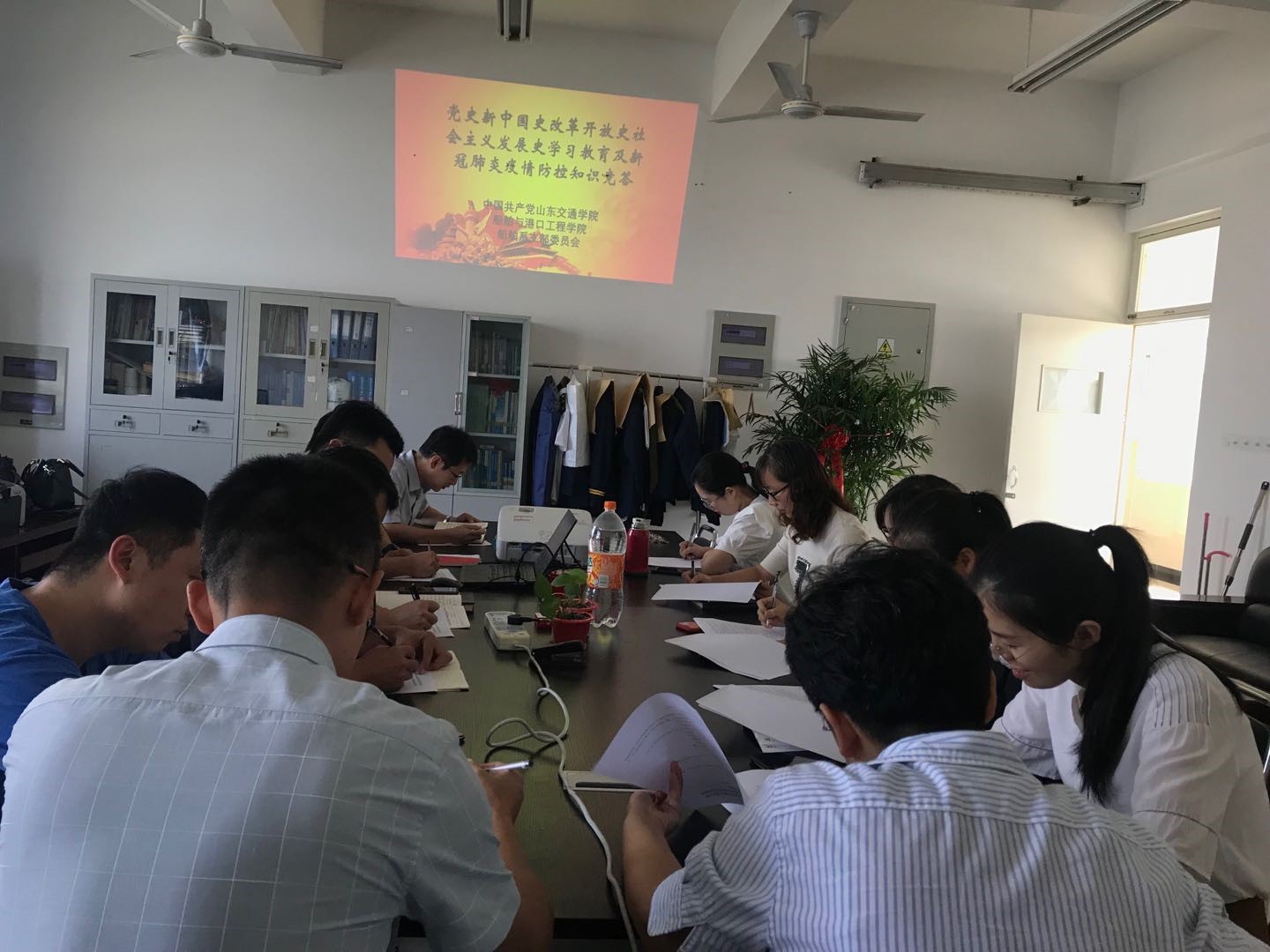 为引导教师进一步深化抗疫认识,坚定理想信念,传承红色基因,激发爱国力行,做到今昔对照、融会贯通,不断增强听党话、跟党走的自觉,努力为实现“两个一百年”奋斗目标、实现中华民族伟大复兴的中国梦贡献智慧和力量。9月16日下午1点半在实验楼D406船舶系办公室召开了党史、新中国史、改革开放史、社会主义发展史学习教育及新冠肺炎疫情防控知识竞答专题会议,船舶系党支部全体党员和入党积极分子参加了本次会议,会议由支部书记宋磊主持。