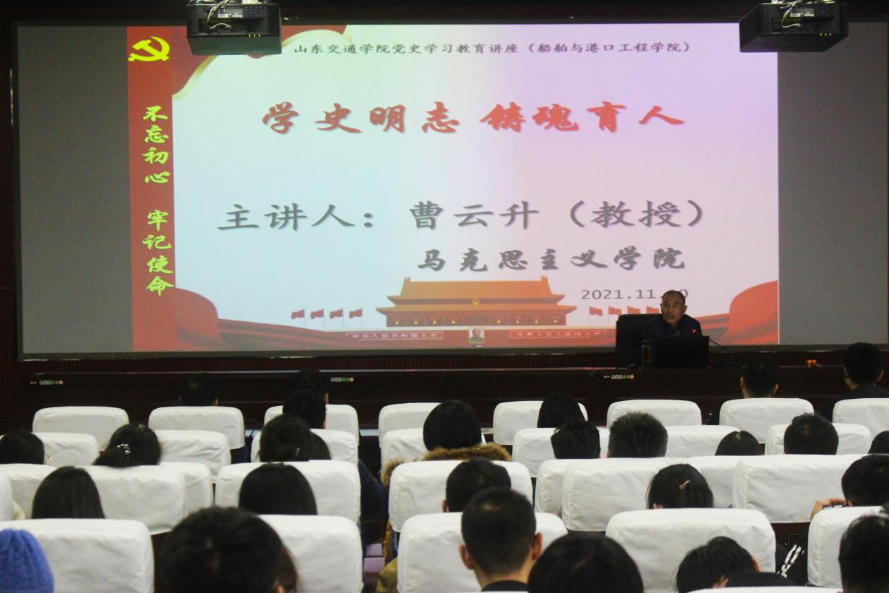 11月10日,2007so太阳集团邀请我校马克思主义学院曹云升教授在威海校区第二报告厅C101讲授党史学习教育专题党课。2007so太阳集团全体教职工、学生党员和入党积极分子参加本次党课。