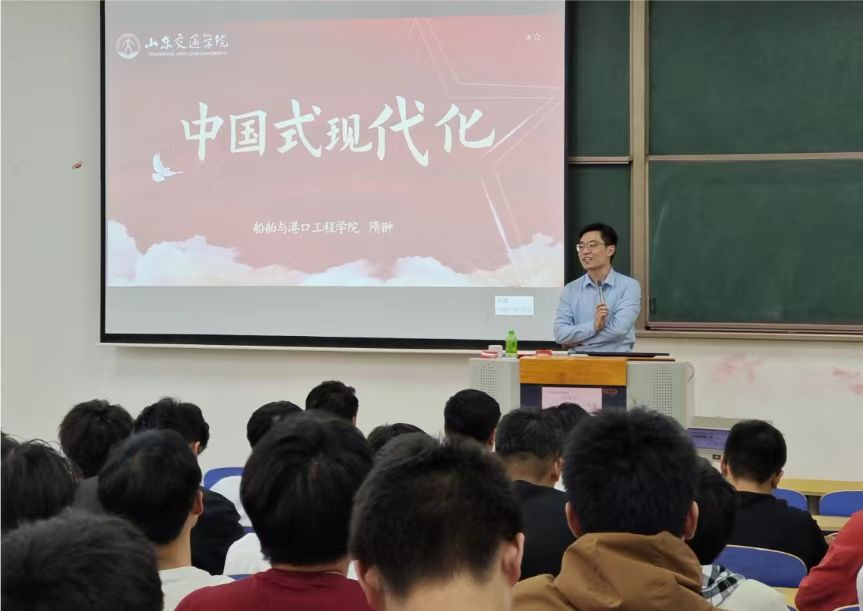 隋翀重点从引用古今中外各国进行现代化实践探索的案例讲到中国式现代化的五个“中国特色”、中国式现代化的发展来源,打破了“现代化=西方化”的迷思。隋翀指出,一是要提高政治站位,深刻学习领会习近平总书记关于中国式现代化重要思想的核心要义、丰富内涵,以更高的政治自觉、思想自觉、行动自觉,坚定拥护“两个确立”、坚决做到“两个维护”;二是要坚持学思用贯通、知信行统一,把学习党的二十大精神贯彻落实到生活的方方面面,在中国式现代化建设中进一步提高专业素养,从而更好地服务社会;三是增强斗争精神和本领,立志做有理想、敢担当、能吃苦、肯奋斗的新时代好青年,在建设中国式现代化伟大征程中展现自己的绚丽风采。