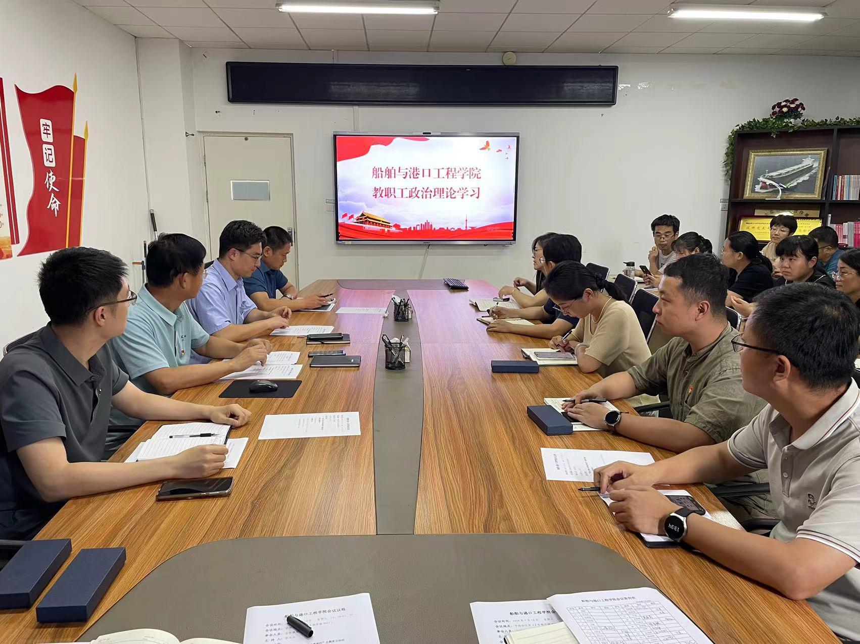 隋翀结合学院实际提出三点要求:一是认真学习贯彻习近平总书记关于新质生产力的重要论述,进一步增强科教兴国和科技强国的责任感、使命感;二是加强谋划,统筹推进,在推动新质生产力发展中充分展现“船港人”的担当和作为;二是立足当前学科优势,从实际工作出发,不断提升自身素质和业务能力,提升人才培育质量,为人才强国、海洋强国建设贡献智慧和力量。