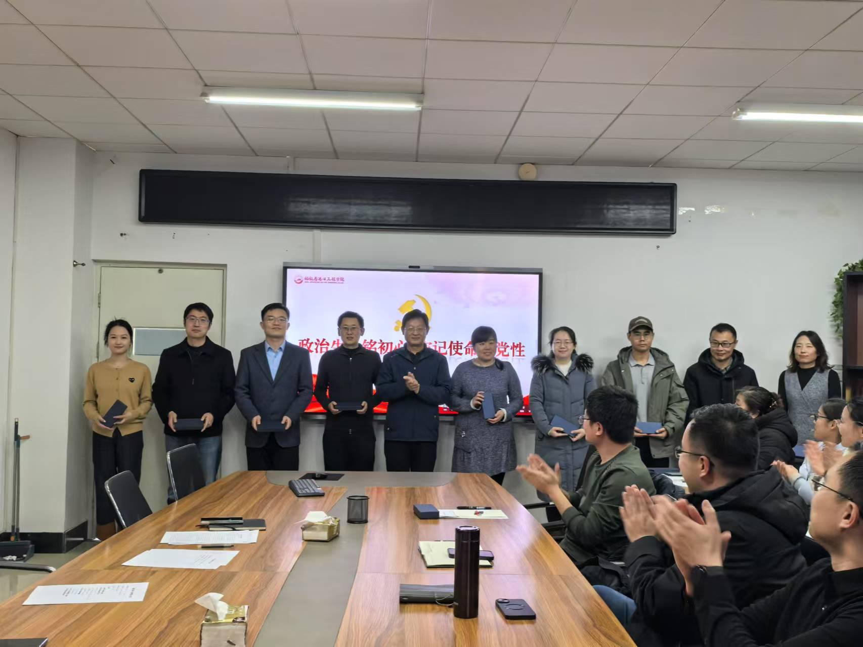 活动中,学院党委书记隋翀、院长李光正为下半年过“政治生日”的党员同志颁发“政治生日”纪念品。一支小小的书签,传递了学院党委对党员的关心和鞭策,提醒大家时刻牢记教师党员身份,牢记为党育人、为国育才的初心使命,以赤诚之心、奉献之心、仁爱之心投身教育事业、投身学院发展。