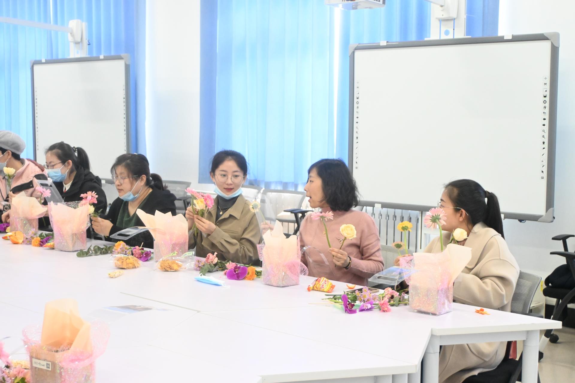 为迎接第112个“三八”国际劳动妇女节,我院于3月7日14点在金工楼301智慧教室开展“花艺展风采·喜迎二十大”插花沙龙活动,15名女教职工共品花香之韵,同享创作之乐,通过插花活动提高素养、提升境界、丰富精神,以更加饱满的热情为教育事业建功立业、接续奋斗。
