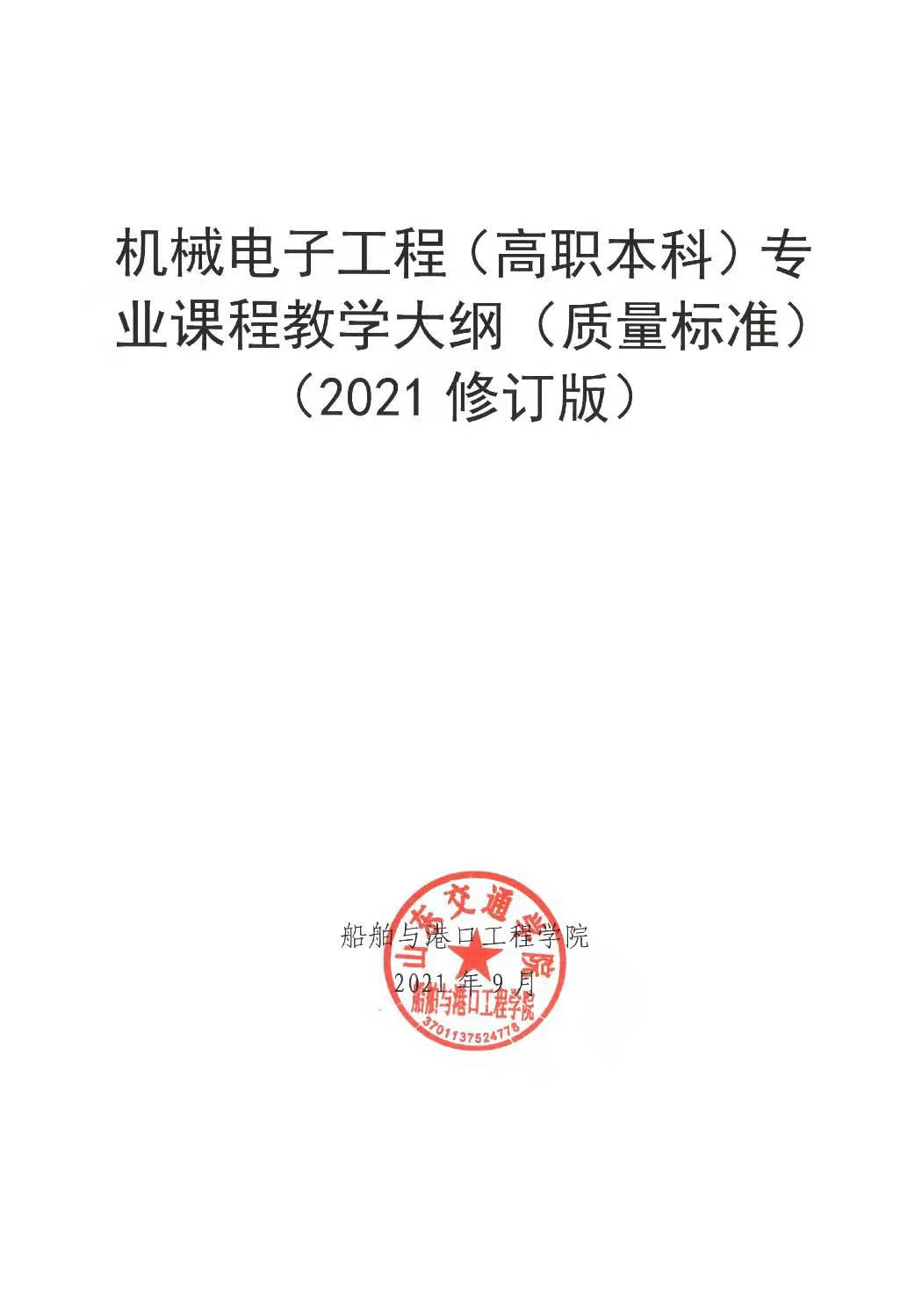 机械电子工程(高职本科)专业课程教学大纲(质量标准)