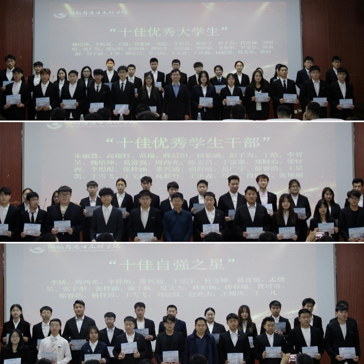 与会领导及老师分别为“十佳优秀学生”、“十佳优秀学生干部”、“十佳自强之星”、“十佳学习标兵”、“十佳进步之星”、“优秀班集体”及“优良学风宿舍”获奖学生及集体颁奖。