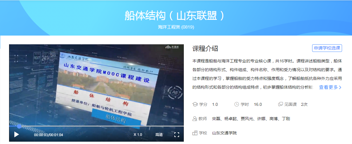 2017年,《船体结构》定位为校级信息化建设高级课程;