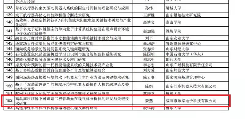 近日,2020年山东省自然基金(第二批)重点项目立项公布,由我院丁进老师联合威海市乐家电子科技有限公司共同申报的 “高温高压环境下可调谐二极管激光在线气体分析仪的开发与关键技术研究”获得立项。