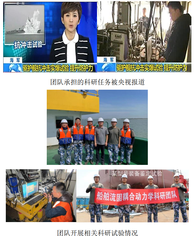 1. 国家重点研发计划项目——新型极地冰区半潜式钻井平台关键技术研究子课题,主持 2. 工信部LJ专项子课题——瞬态高过载试验测量分析,主持 3. 工信部第七代超深水钻井平台(船)创新专项——振动噪声控制技术研究,子课题技术负责人 4. 山东省重点研发计划项目——舰船推进系统管系抗冲击性能设计及评估方法研究,技术负责人 5. 集装箱建筑空中爆炸毁伤技术研究,2018-2019,主持 6. 舰船设备爆炸抗冲击性能计算分析技术开发,2019-2020,主持 7. 基于流固耦合方法的闸门结构强度分析计算方法研究,2019-2020,主持 8. 船舶振动及结构强度分析技术开发,2019-2020,主持 9. 船舶抗冲击试验技术开发,2020-2021,主持 10. 山东省高等学校青创科技计划研究项目,2022-2025,主持 11. 抗CJ试验测试,2022-2022,主持 12. 实船测试现场辅助勘验及保障服务,2022-2023,主持 13. 实船抗冲击测试试验技术开发,2022-2023,主持 14. 燃机模拟装置试验冲击测量,2023-2024,主持 15. 典型设备科研性冲击试验测量专用仪器研制,2023-2024,主持