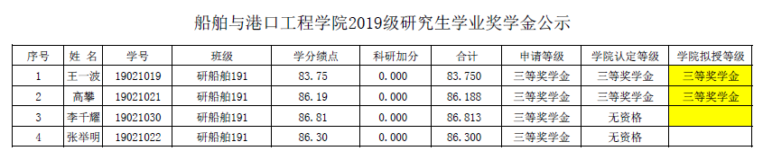 根据山东省学生资助管理中心《关于下达2020年省属高校奖助学金的通知》(鲁学助〔2020〕24号)、太阳集团2007《关于做好2020 年研究生学业奖学金评定的通知》(研学函〔2020〕8 号)的通知要求,按照《太阳集团2007硕士研究生学业奖学金评定办法(试行)》(鲁交院研发〔2014〕4号)、《太阳集团2007硕士研究生学业奖学金评定实施细则(试行)》(研学发〔2014〕3号)文件规定,现对2020年2007so太阳集团研究生学业奖学金评定结果进行公示。公示时间3个工作日,自2020年10月27日至10月29日。公示期内如有异议,请以书面形式提交至2号教学楼B419崔文超老师处,公示期结束不予处理。