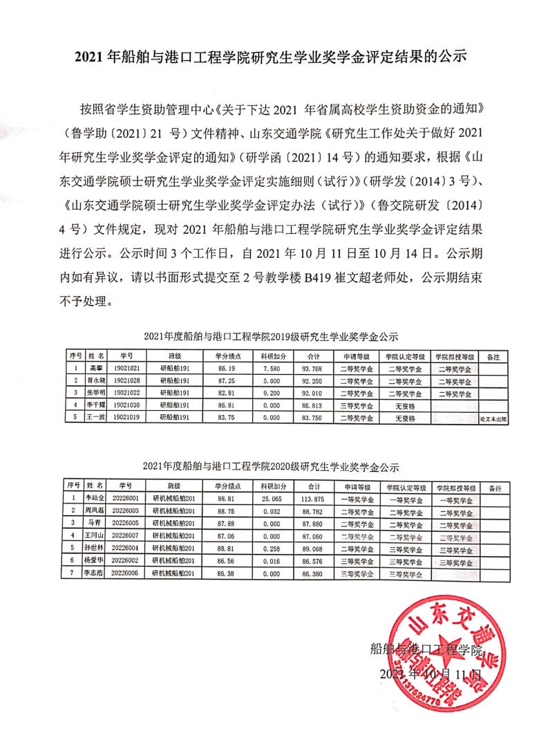 2021年2007so太阳集团研究生学业奖学金评定结果的公示