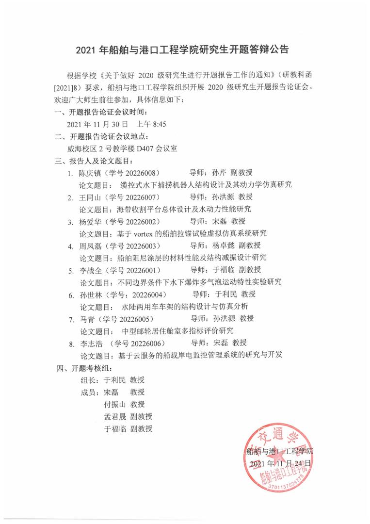 2021年2007so太阳集团研究生开题答辩公告