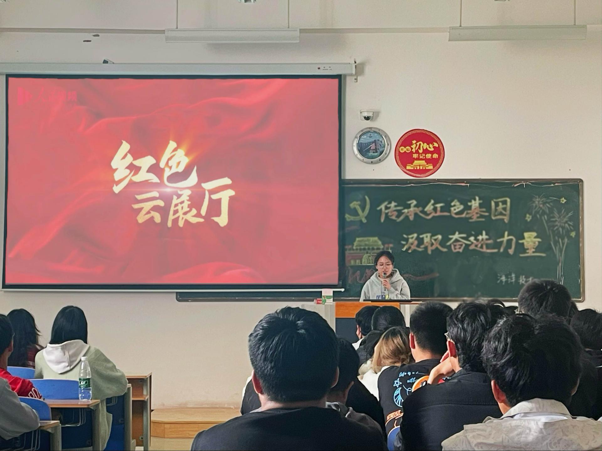 活动伊始,各班主讲人带领团员深入学习党的奋进历程,领略革命先辈不怕牺牲、顽强拼搏的英雄气概和崇高的革命精神。之后,各团支部以人民网推出的“红色云展厅”线上平台为依托,采取集中观看的学习方式,利用教学多媒对革命故地进行参观学习,通过现代科技了解百家红色场馆的党建党史、四史等知识,亲身感受“红色基因库”中独特的红色文化与珍贵的红色精神、红色基因。