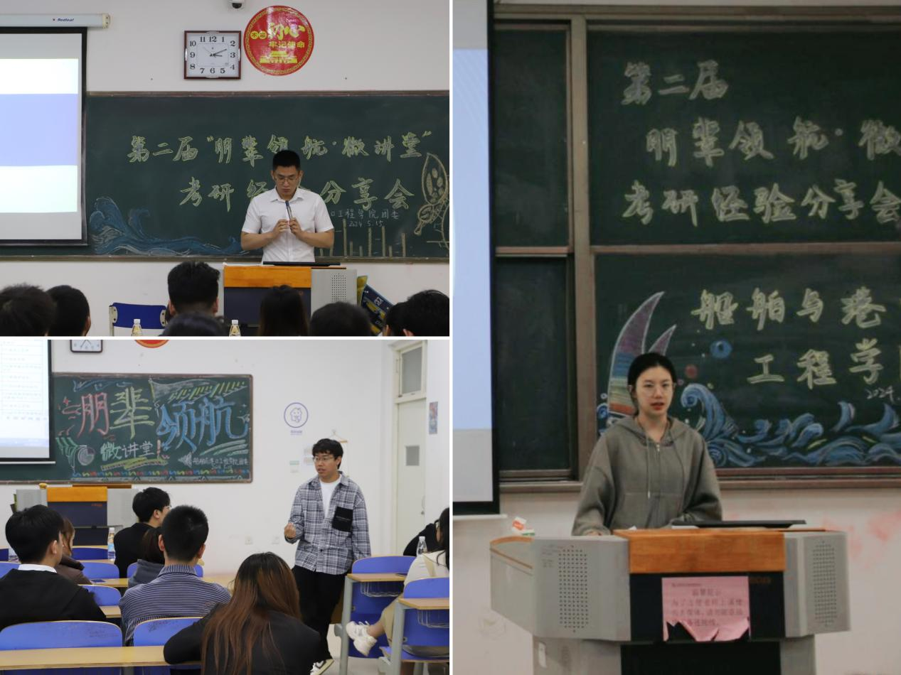 5月15日下午,学院团委在2号教学楼C107、B105、B107举行第二届“朋辈领航·微讲堂”考研经验分享会活动。本次考研经验分享会分为船舶与海洋工程、海洋技术、机械电子工程三个专场,由2020级已考研上岸的优秀学生代表共14位同学分享考研经验,学院百余名本科生参加活动。