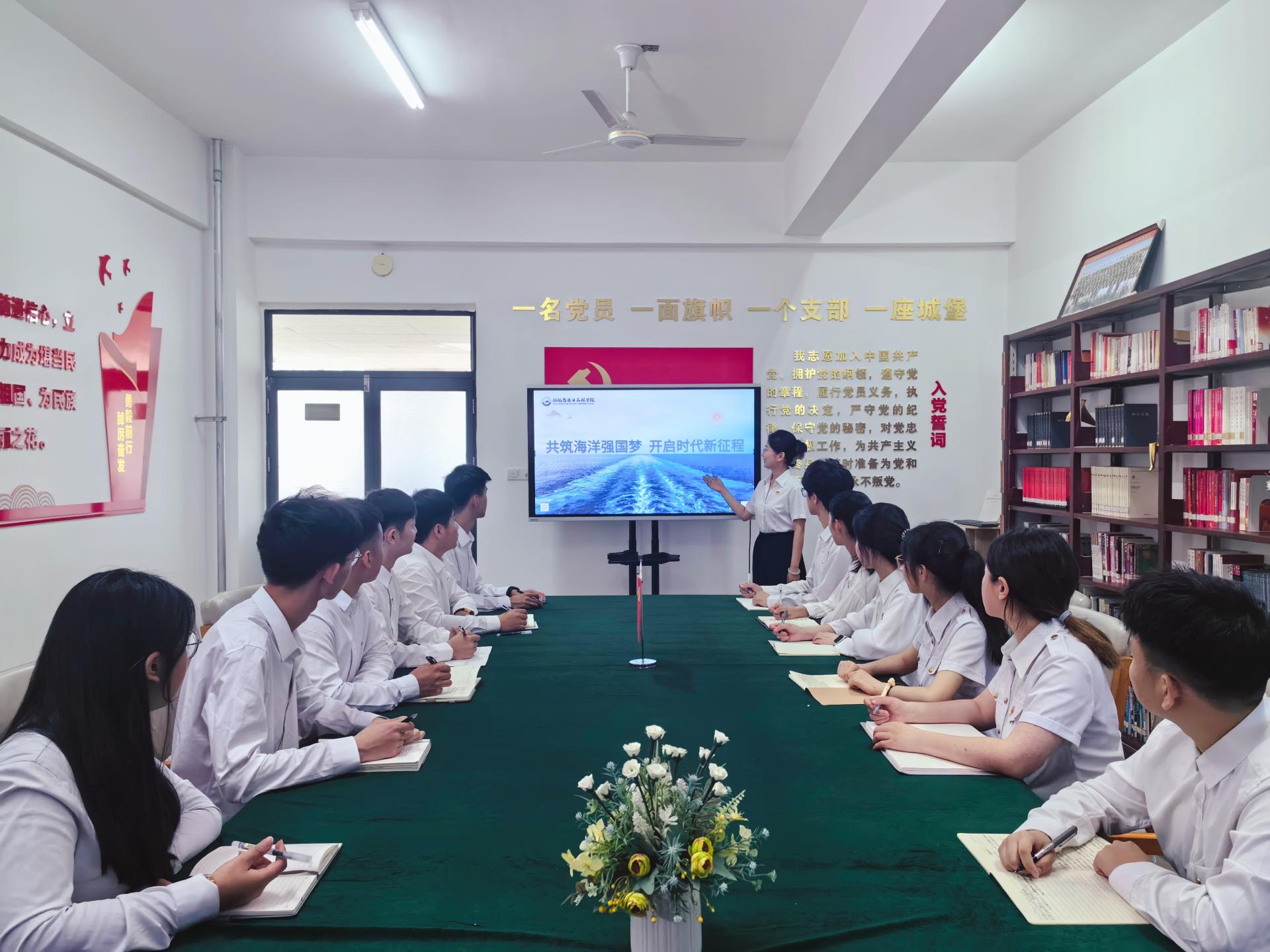为深入学习贯彻党的二十大和二十届二中、三中全会精神,全面落实习近平总书记关于青年工作的重要思想,引导广大团员青年坚定听党话跟党走,系统推进全面从严治团,加强学院团干部队伍建设和团支部建设,9月11日,学院在“一站式”学生社区举办“共筑海洋强国梦,开启时代新征程”团委书记讲团课活动。本次团课活动由学院团委书记丛景妤主讲,学院团干部、青马班全体学员参加。