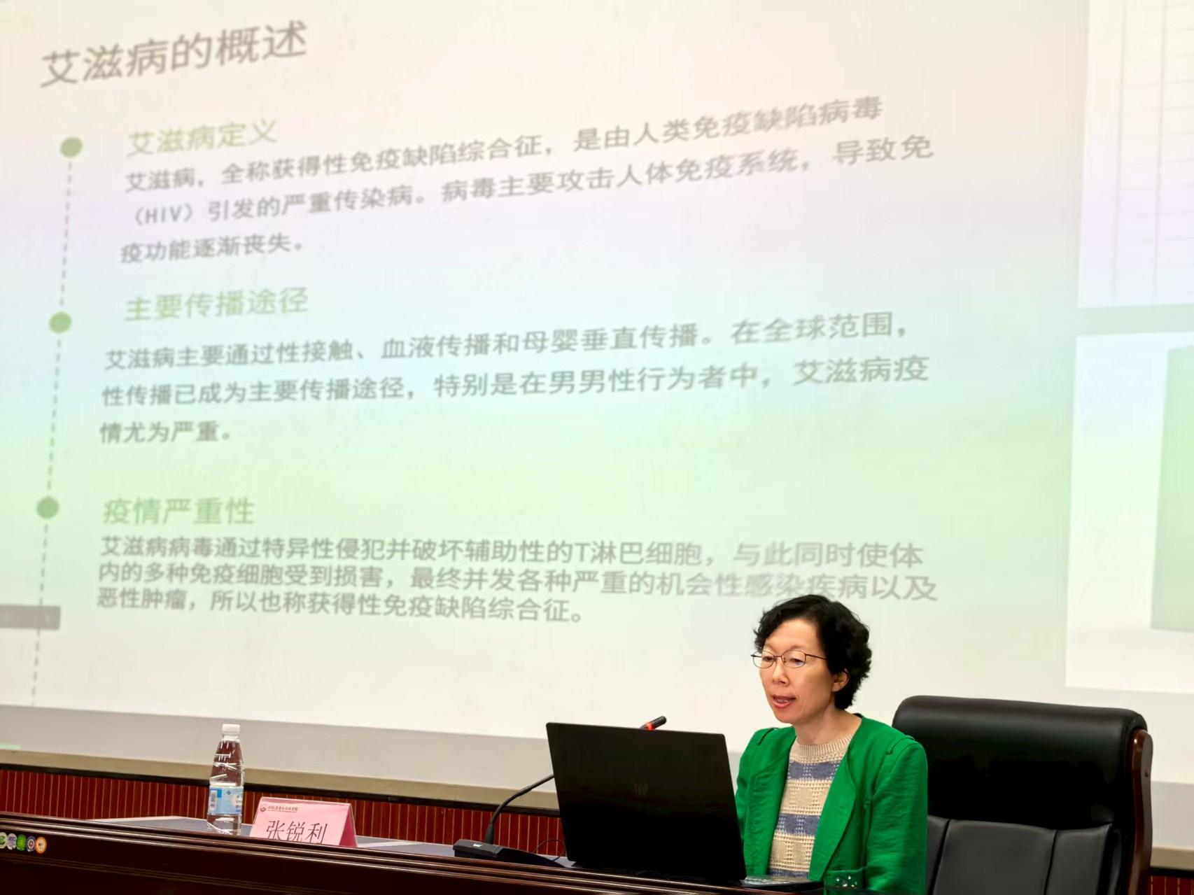 张锐利主任围绕大学生性健康与疾病防控主题展开,根据相关数据的显示,揭示当前大学生群体面临的性健康及艾滋病等传染病风险现状,引发同学们重视;接着阐述了科学的预防措施,从观念、行为、检测等层面构建防护体系;最后,她强调应消除社会歧视,营造包容的校园防控氛围,引导新生树立健康观念,筑牢青春健康防线。