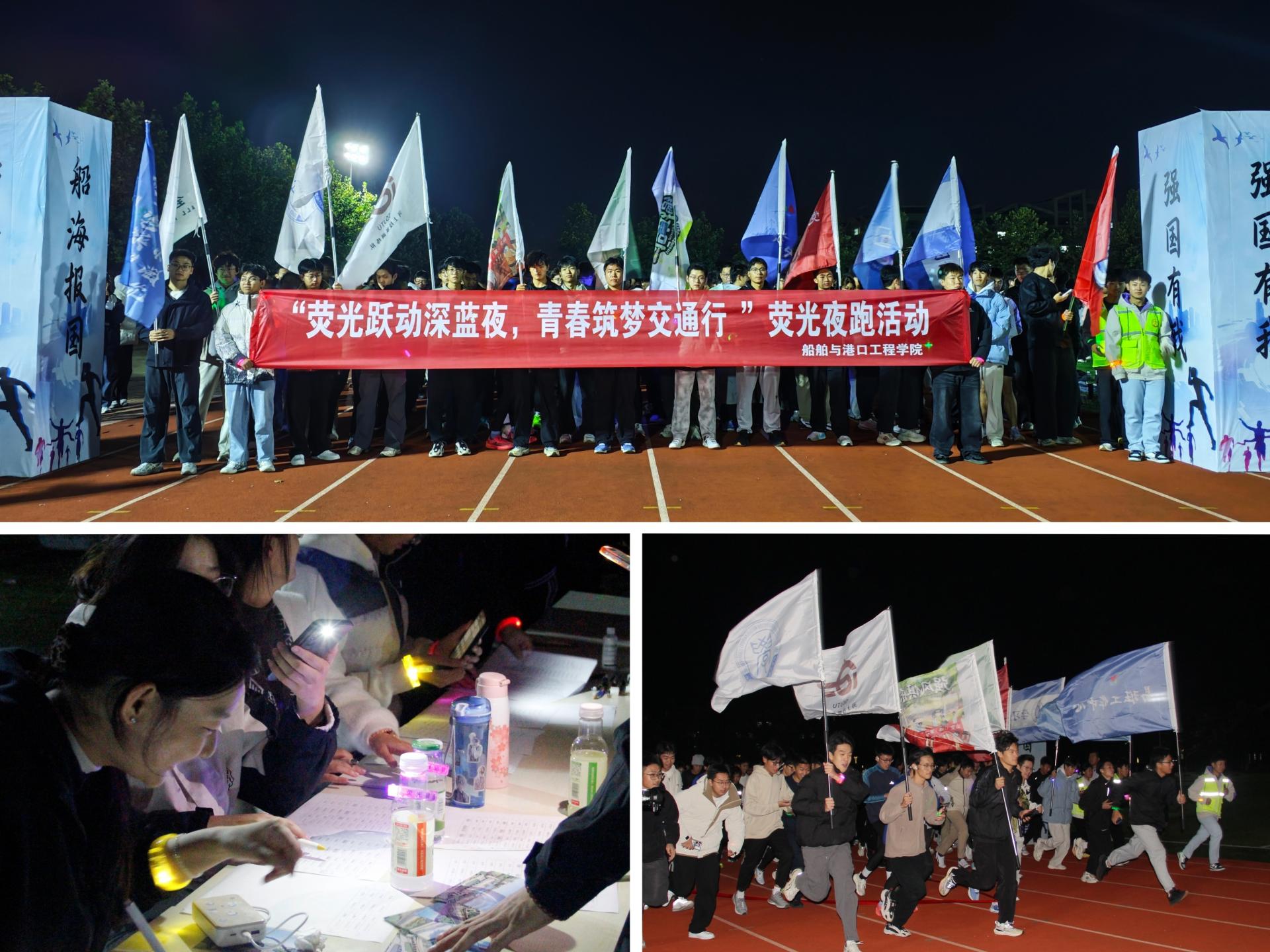 10月23日晚,学院在威海校区体育场举办“荧光跃动深蓝夜,青春筑梦交通行”荧光夜跑活动,近300名师生参加。