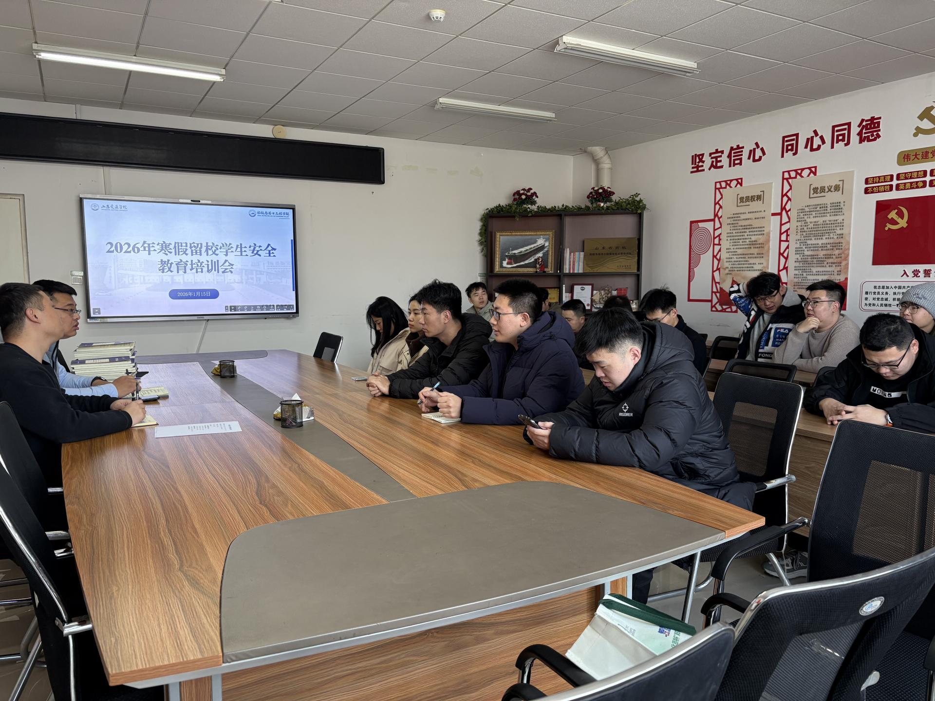 1月15日,学院在威海校区二号教学楼D407会议室开展寒假留校学生安全教育培训会。学院辅导员、研究生班主任和全体留校学生参加。