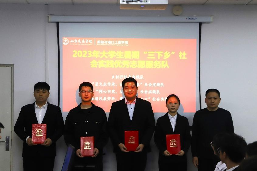 启航新时代文明实践志愿服务队队长王金钊展示了2023年学院志愿服务工作并带领全体志愿者进行宣誓,优秀志愿者代表季云阔作经验分享,辅导员为优秀志愿者代表、优秀志愿服务队代表颁发荣誉证书。