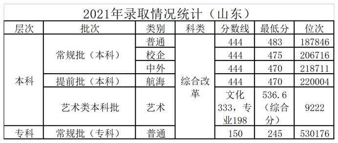 2、山东省分批次往年招生录取情况