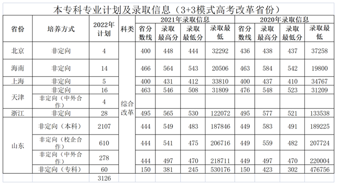 1、 山东省分专业招生计划及往年录取情况