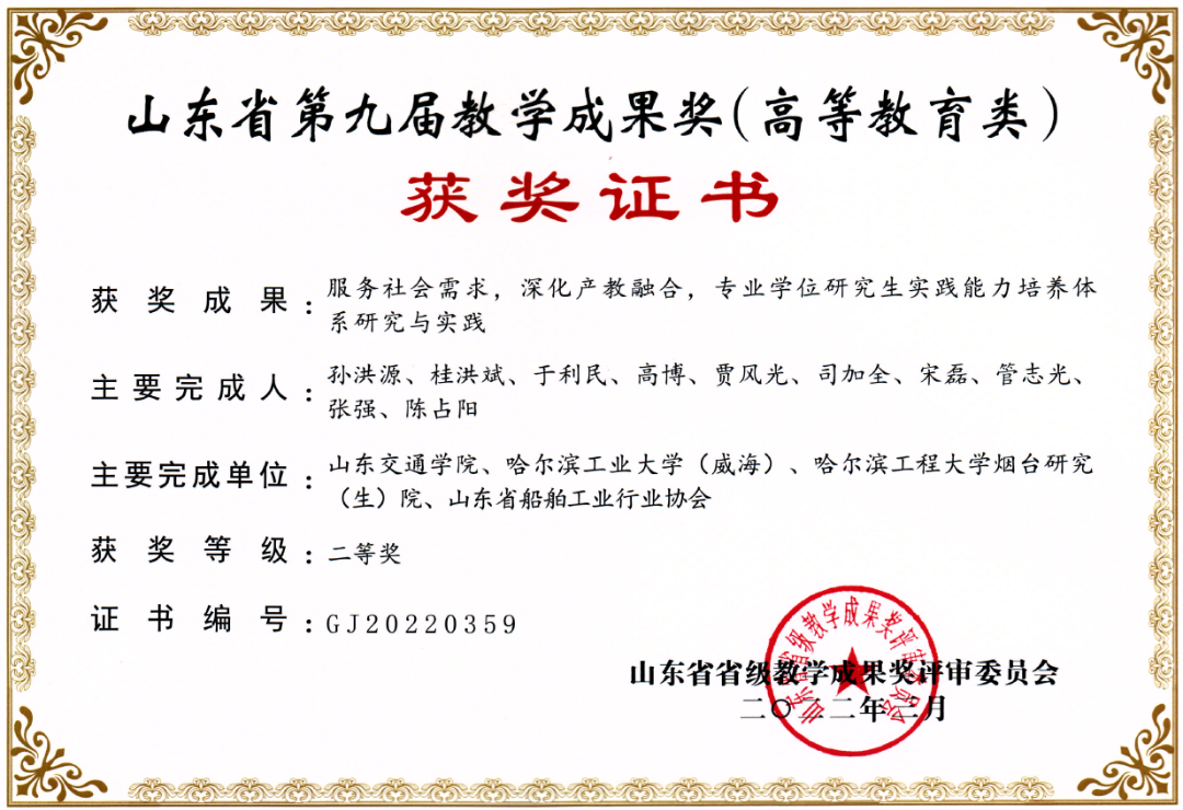 • 2009年被山东省政府列为“省级船舶与海洋工程专业人才教育培养基地”;