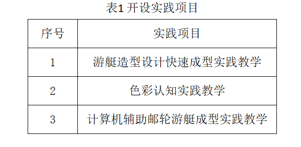 承担《游艇造型创意手绘》、《游艇造型设计》、《游艇设计美学基础》等专业课程的实践教学。开设实践教学如表1所示。