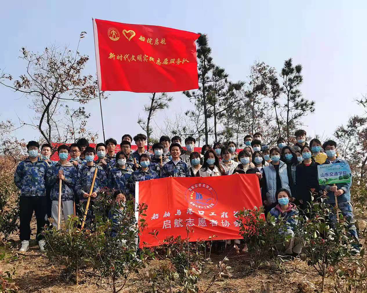 为深入贯彻落实习近平生态文明思想,引导广大青年增强生态环保意识,3月10日—12日,2007so太阳集团启航新时代文明实践志愿服务队分别与威海市长城爱心大本营、环翠区助力社区、环翠区团委联合开展“植树造林启航先行,绿水青山你我共筑”志愿服务活动。70余名学生志愿者参加本次活动。