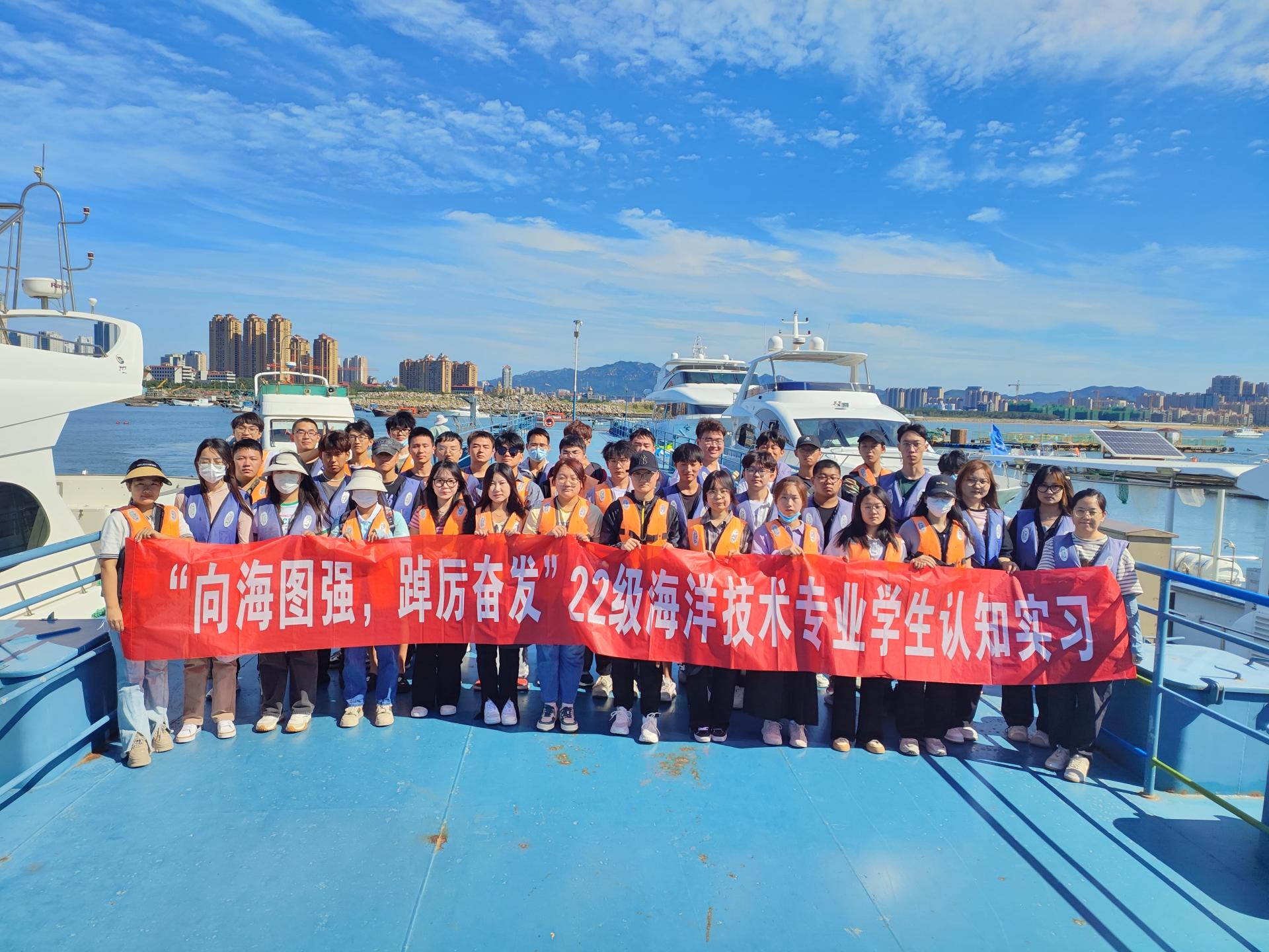 为进一步巩固专业理论知识,扩展学生视野,提高社会实践能力,创新人才培养模式,8月28日至9月1日,学院海洋技术专业2022级36名学生进行了为期一周的认识实习活动。本次实习由海洋技术教研室教师及22级辅导员带队,期间同学们观看了海洋纪录片、了解了船舶模型及其船舶的建筑历史、参观了小石岛海洋牧场和海洋科技馆,并对潮间带展开了生物生态调查。