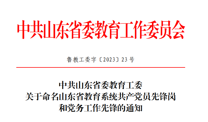 我院教师团队获得“山东省教育系统共产党员 先锋岗”称号