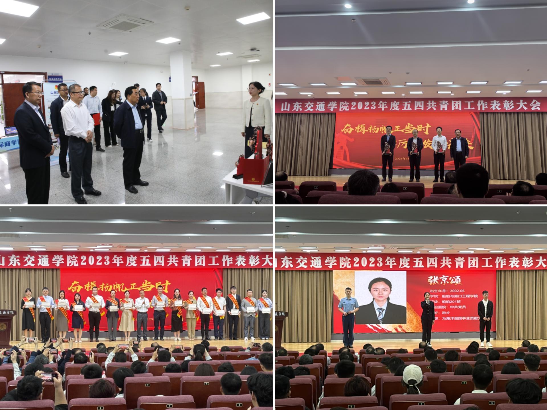 4月29日下午,学校在长清校区明德楼101报告厅举行2023年度五四共青团工作表彰大会。学院团委荣获“红旗团委”、创新创业“登峰杯”2项集体荣誉称号,辅导员张阳获得共青团模范工作者,高嘉诚等5位同学获得学科及创新创业竞赛标志性成果奖,杨紫涵获得优秀共青团员标兵,机电211团支部获得红旗团支部,船舶211等3个团支部获得先进团支部,朱丽慧等25名学生获得优秀共青团干部,焦天琪等35名学生获得优秀共青团员,张京颂作为优秀毕业生代表进行成长故事分享。