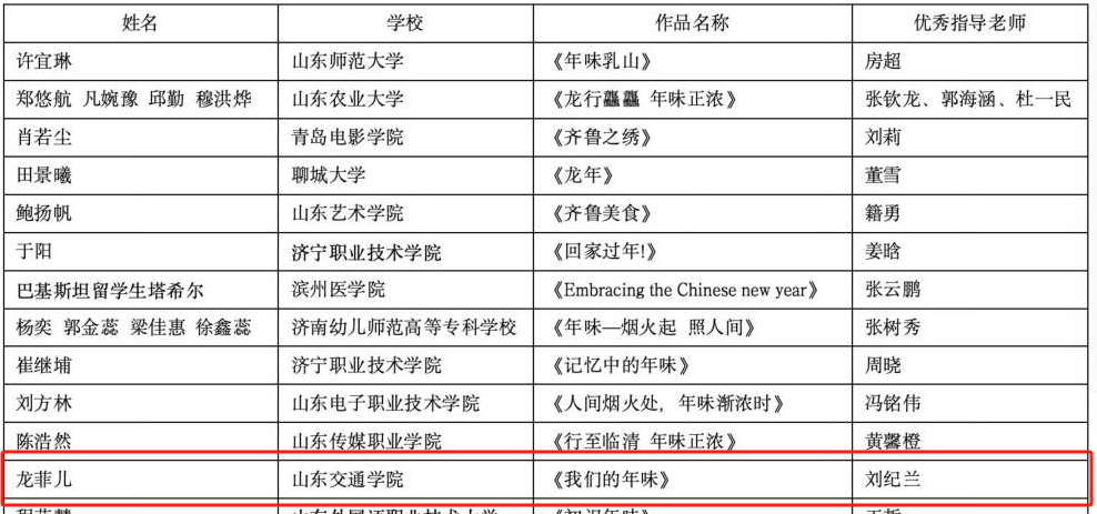 近日,由山东广播电视台融媒体中心、闪电新闻策划推出的“闪电杯”山东省大学生短视频大赛评审结果公布,我校获优秀组织奖,我院学生龙菲儿获三等奖,我院教师刘纪兰获优秀指导教师。