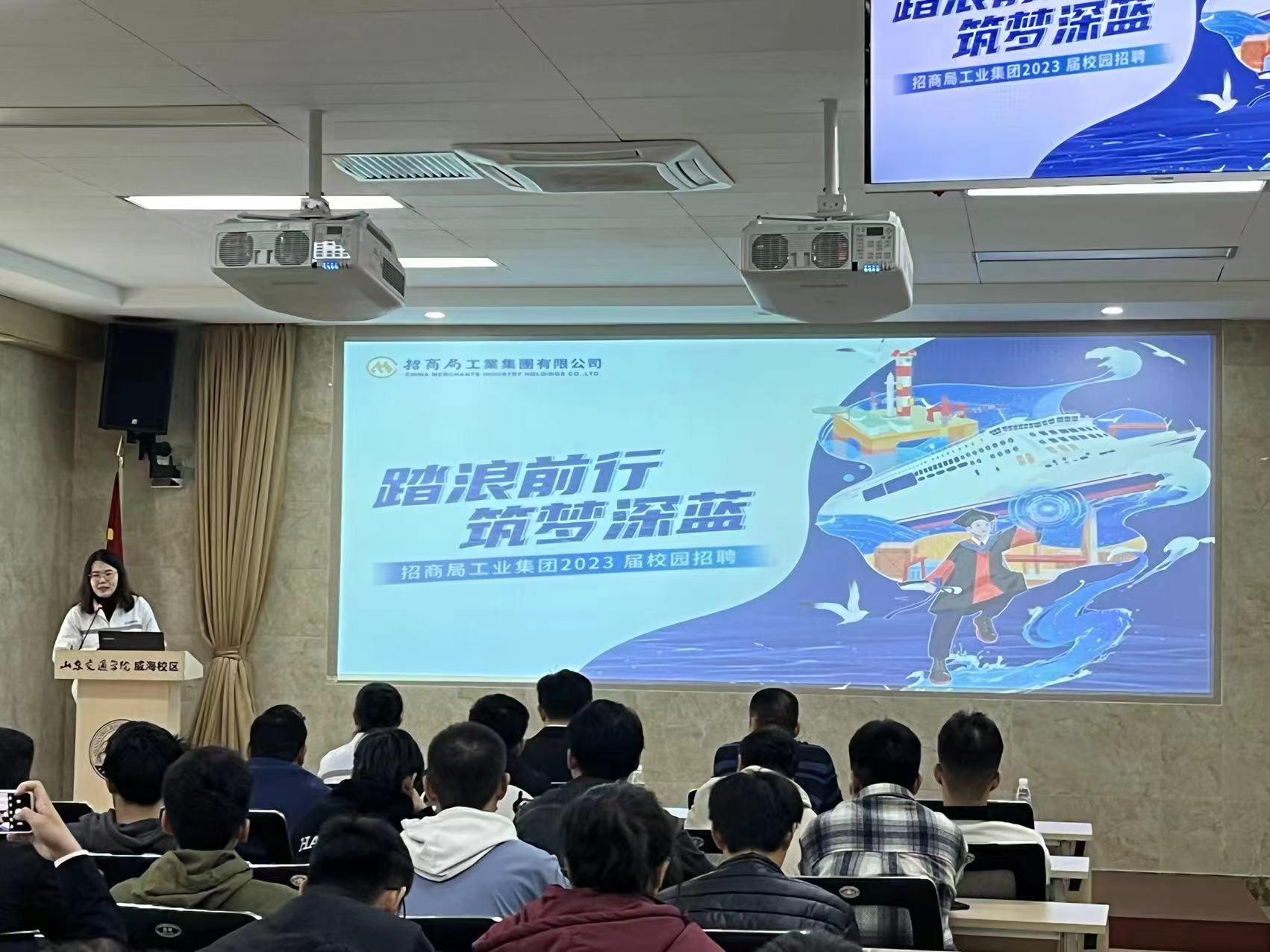 10月14日,招商局金陵船舶(威海)有限公司总经理助理、人力资源部经理周旻等一行六人来学校进行2023届毕业生招聘宣讲,宣讲会在明德楼第一报告厅举行,出席此次招聘会的人员有学院党委书记隋翀、党委副书记宋新刚、相关辅导员、往届优秀校友以及2023届毕业生。