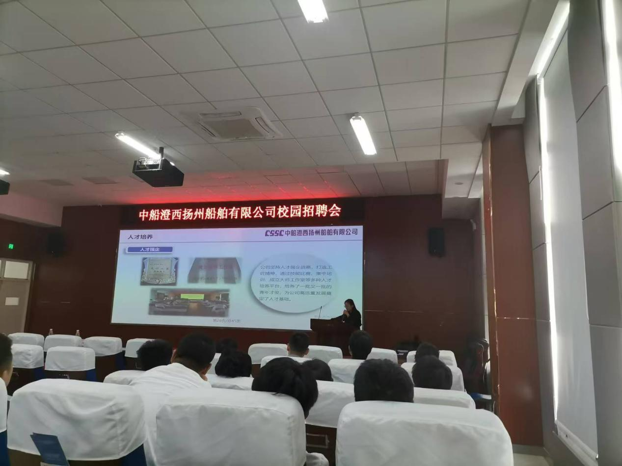 学院邀请招商局工业集团有限公司旗下招商局金陵船舶(南京)有限公司、招商局金陵船舶(江苏)有限公司、招商局金陵船舶(威海)有限公司、招商局金陵船舶鼎衡(扬州)有限公司,烟台中集来福士海洋科技集团有限公司旗下烟台中集来福士、海阳中集来福士、龙口中集来福士、中集海洋工程研究院等子公司及中船澄西扬州船舶有限公司在内的多家校友企业进校开展招聘活动。上述企业均对学院已就业毕业生给与高度评价,并希望2025届毕业生同学们可以向学长学习,积极投身船舶行业一线中,能吃苦,肯奋斗,为海洋强国建设贡献自己的力量。